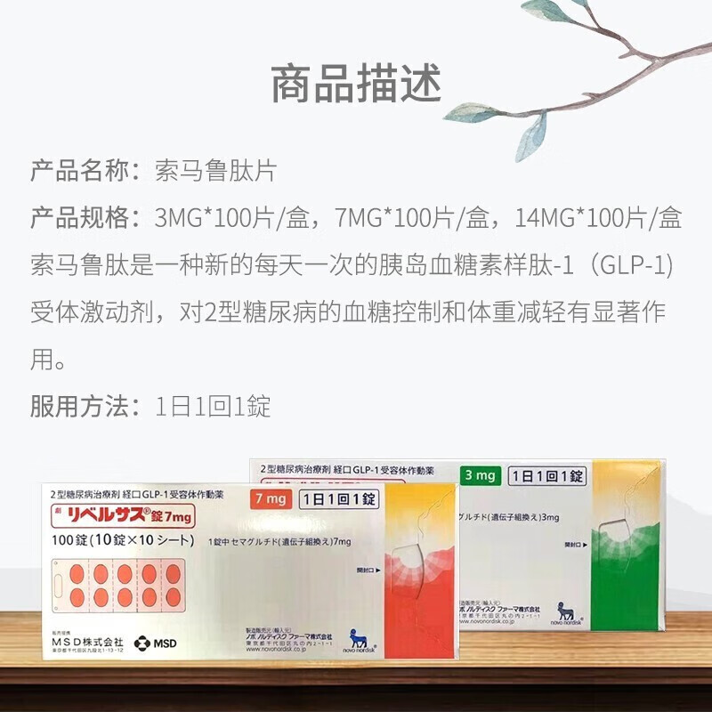 日本MSD原装进口减重版口服片司美格鲁肽口服片降血糖减脂促进胰岛分泌降糖药2型糖尿病高血糖