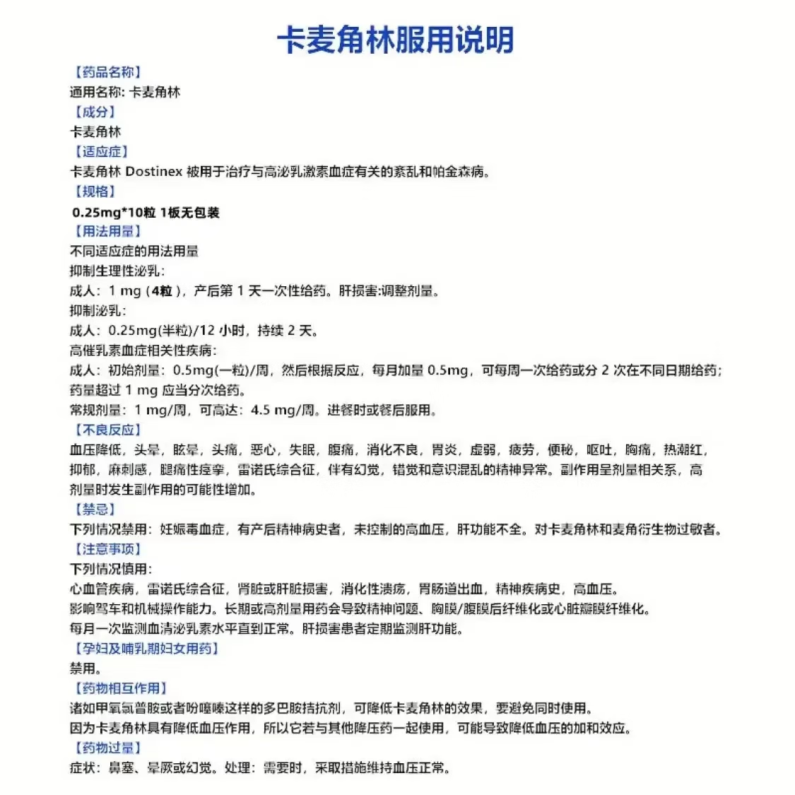 日本原装卡麦角林回奶片0.25mg*10粒/盒