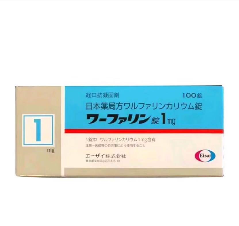 日本进口华法林钾片血栓调节剂1mg*100粒/盒卫材脑梗后遗症 1mg 100粒*2盒