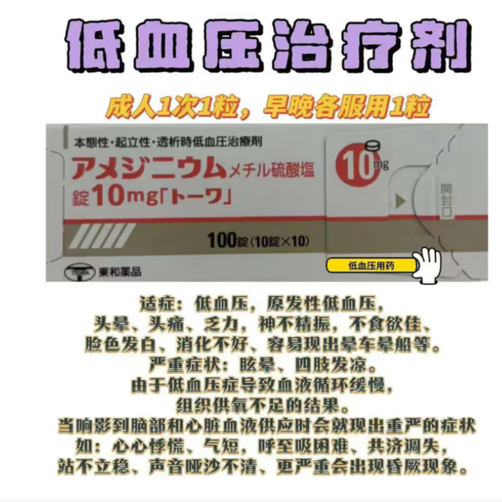 日本原装进口 东和透析i升压药血压低于正常水平 间接促进交感神经亢进 原发低血压 起立性低血压
