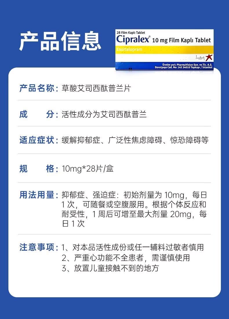 Cipralex 10mg/草酸艾司西酞普兰